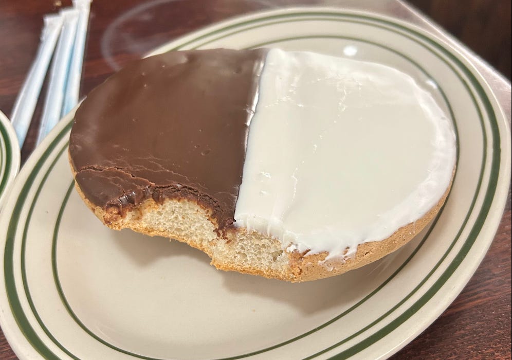 the black & white cookie at the Famous 4th Street Delicatessen