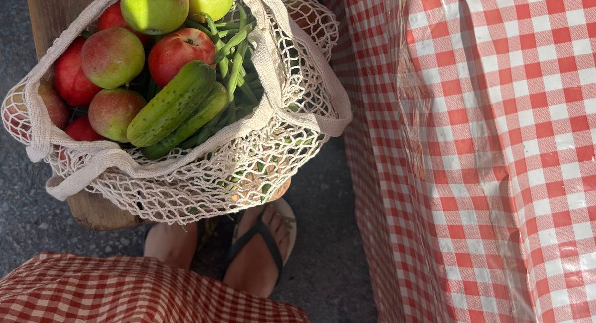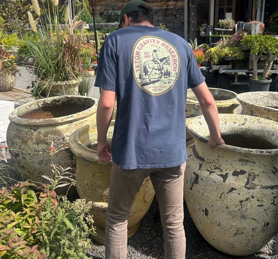 bonding with the farmers market man over my old Organic. shirt that I’m thankful I haven’t donated yet