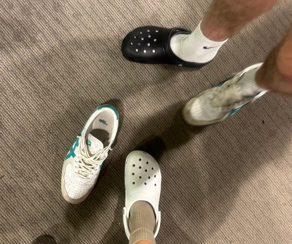 being told no to this dynamite matching situation (bride and groom crocs come onnnnn)