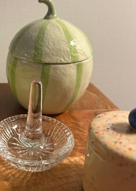 a really special crystal (+ my stoneware honeydew jar that my mom mistook for a gourd)
