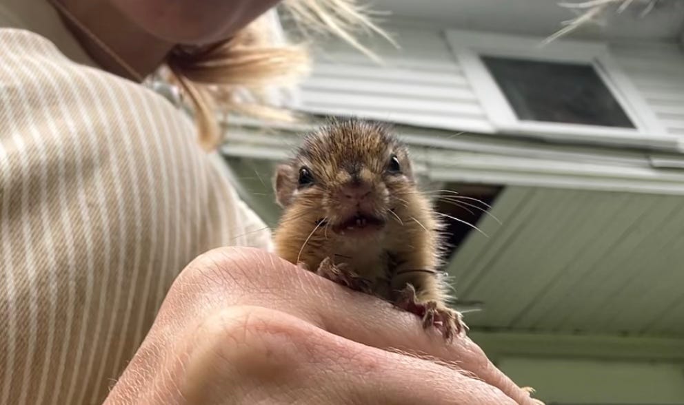a lone chipmunk [LOOK AT HIS TEETH] [he bit my pinky] [..chipmunks don’t usually have rabies]
